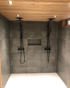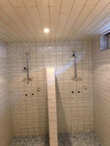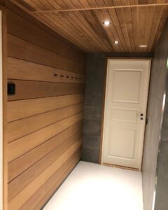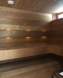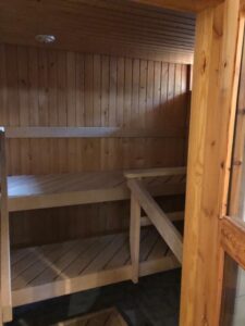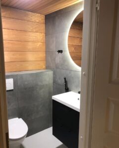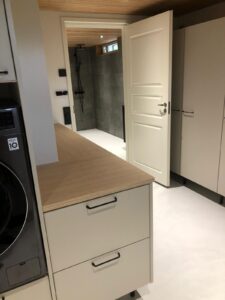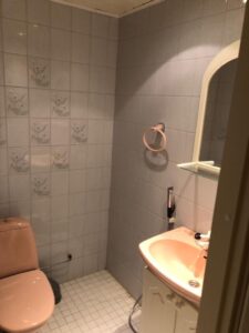 Saneerasimme kylpyhuoneen, saunan, kodinhoitohuoneen ja wc:n.